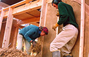 This readily-available renewable resource, which consists of highly-compressed bales of hay coated with clay plaster, has been used for centuries in Europe and Asia. The hay is treated for resistance to fire, fungus and rodents, and the clay can be applied in various densities and thicknesses to ensure the correct ratio of thermal mass and high insulative value.